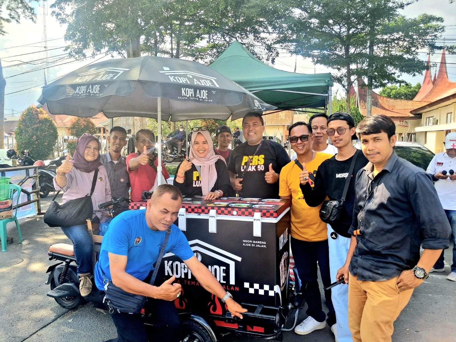 Owner Kopi Ajo, Dede Saputra, menyampaikan bahwa pihaknya sangat mendukung langkah positif yang dilakukan wartawan Luak 50. “Melalui dukungan sederhana ini, kami ingin menunjukkan kepedulian sekaligus mendukung rekan-rekan wartawan yang sudah bekerja keras menginisiasi kegiatan sosial pasca kebakaran pusat pertokoan Blok Barat Pasar Payakumbuh,” ujarnya.