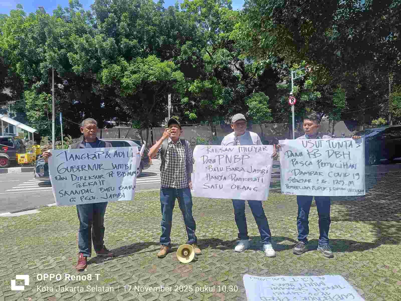 “Praktik-praktik seperti ini bukan hanya merugikan keuangan negara, tetapi juga mengkhianati rakyat Jambi sebagai daerah penghasil,” tegas Koordinator Aksi Andri.
