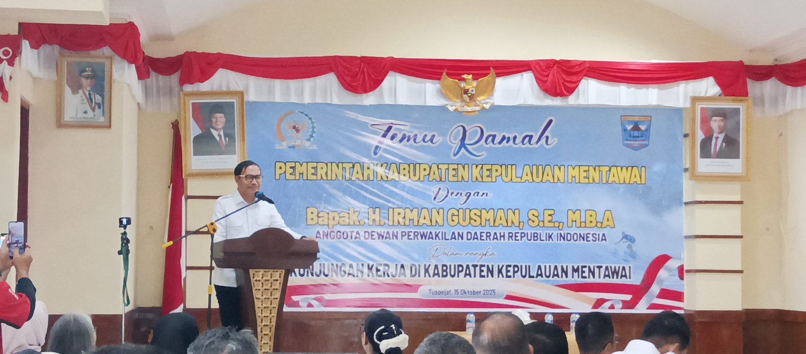 BENUANEWS. COM | MENTAWAI ~ Dalam rangka menyerap aspirasi daerah sekaligus melihat secara langsung potensi dan kendala daerah dalam pembangunan Anggota Dewan Perwakilan Daerah (DPD) RI H. Irman Gusman, S.E, M.B.A melakukan kunjungan kerja ke Kabupaten Kepulauan Mentawai.(15/10/2025).