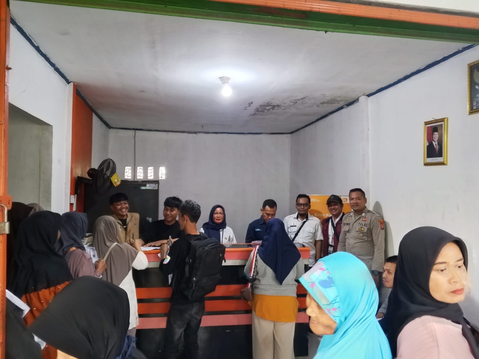 Lebak,Benuanews.com Anggota polsek banjarsari Bripka PUZIYANTO.,SP.d. melaksankan giat pengamanan pembagian BLT di kantor pos Desa. Cidahu. Kec. Banjarsari .