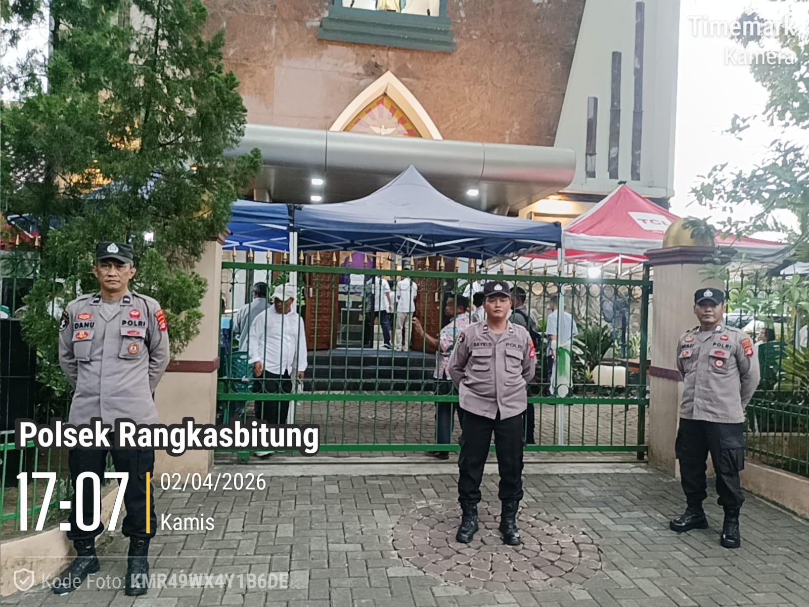Anggota Polsek Rangkasbitung Polres Lebak Melaksanakan Giat Pengamanan Kenaikan Isa Almasih di Gereja Santa Maria Tak Bernoda