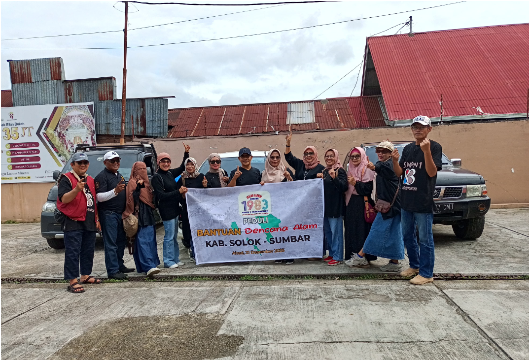 Tak terkecuali dari dari Angkatan 1983 SMP N 1 Payakumbuh ikut berdonasi menyalurkan bantuan untuk korban yang terdampak bencana alam di Solok tepatnya di Kecamatan X Koto Singkarak Dusun Balimbiang, penyaluran bantuan tersebut langsung di antar oleh beberapa urusan dari Angkatan 83 SMP 1 , yang di ketuai oleh Adree Anthoni serta wakilnya Marjonis Wandy Elvia , serta humas Angkatan 83 SMP. N 1Payakumbuh , Jhon Jonaidi bantuan langsung tersebut di salurkan Minggu (21/12) 2025 .