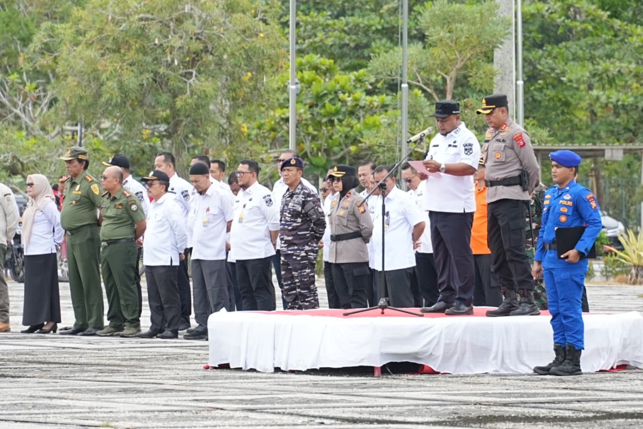 Kapolres Siak AKBP Eka Ariandy Putra saat membacakan sambutan tertulis dari Kapolri Jenderal Polisi Drs. Listyo Sigit Prabowo, M.Si, menjelaskan bahwa Apel Kesiapsiagaan bencana ini dilaksanakan serentak se-Indonesia.