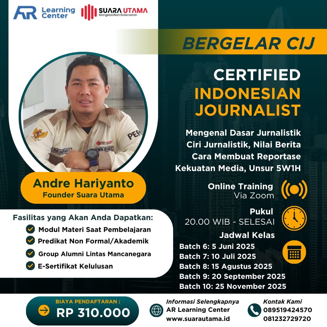Melalui program sertifikasi ini, AR Learning Center berharap lahir jurnalis-jurnalis Indonesia yang berani, cerdas, dan beretika—mereka yang mampu menjadikan tulisan sebagai sarana pencerahan, bukan sekadar informasi.