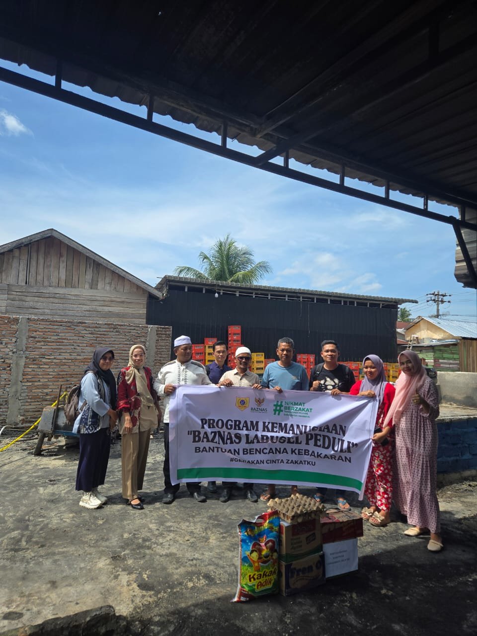 Badan Amil Zakat Nasional (BAZNAS) Kabupaten Labuhanbatu Selatan menyalurkan bantuan kepada korban kebakaran di Dusun Asam Jawa Barat Desa Asam Jawa Kecamatan Torgamba,Kabupaten Labuhanbatu Selatan, Sumatera Utara, Kamis (7/11/2025).