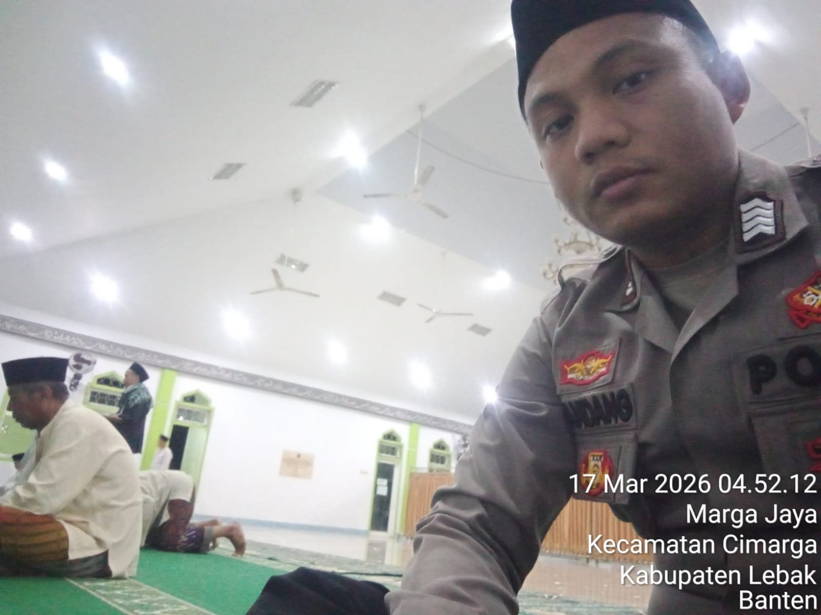 Adapun anggota Polsek Cimarga yang melaksanakan sholat subuh berjamaah Bripka Nandang