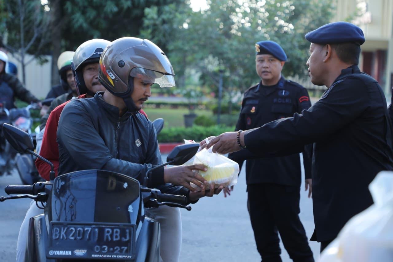 Dalam kegiatan ini, personel Brimob bersama masyarakat membagikan sebanyak 200 porsi takjil berupa jus dan mie kepada para pengendara yang melintas di sekitar lokasi. Aksi berbagi ini menjadi bentuk kepedulian Brimob terhadap masyarakat yang masih berada di perjalanan menjelang waktu berbuka puasa.