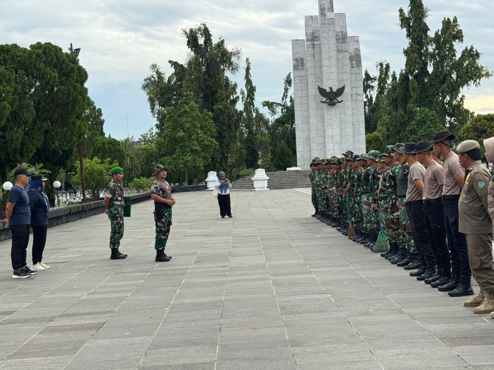 Apel pengecekan dipimpin oleh Danramil Medan, Mayor Maroln Marbun, yang menjadi awal dimulainya kegiatan bersih-bersih di area makam pahlawan. Dengan penuh semangat dan rasa hormat, para peserta bahu membahu membersihkan setiap sudut makam — tempat bersemayamnya para pahlawan bangsa yang telah mengorbankan jiwa dan raga demi kemerdekaan Indonesia.