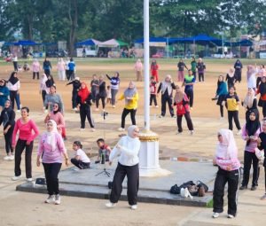 Bunda PAUD Labusel Senam Sehat Bersama Dinsos dan Disdukcapil
