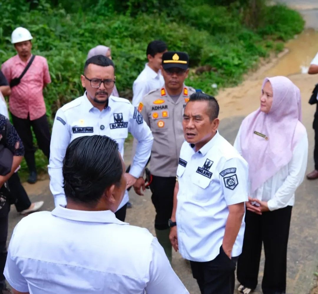 Bupati Labuhanbatu Selatan (Labusel) Fery Sahputra Simatupang bersama Wakil Bupati Syahdian Purba Siboro meninjau langsung lokasi rawan banjir di Dusun Sidorukun, Desa Aek Batu, Kecamatan Torgamba,Kabupaten Labuhanbatu Selatan,Provinsi Sumatera Utara, Rabu (17/12/2025).