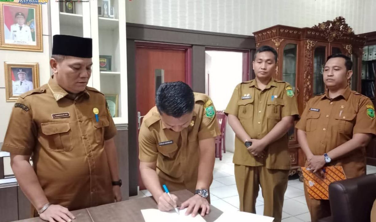 Bupati Padang Lawas, Putra Mahkota Alam Hasibuan, SE, yang diwakili oleh Pj. Sekretaris Daerah Kabupaten Padang Lawas, Panguhum Nasution, S.Sos, M.AP, menyerahkan secara langsung Surat Keputusan (SK) Pelaksana Tugas (Plt) Kepala Badan Pendapatan, Pengelolaan Keuangan, dan Aset Daerah (BPPKAD) Kabupaten Padang Lawas kepada Parlindungan Hasibuan, S.Kom, MM.