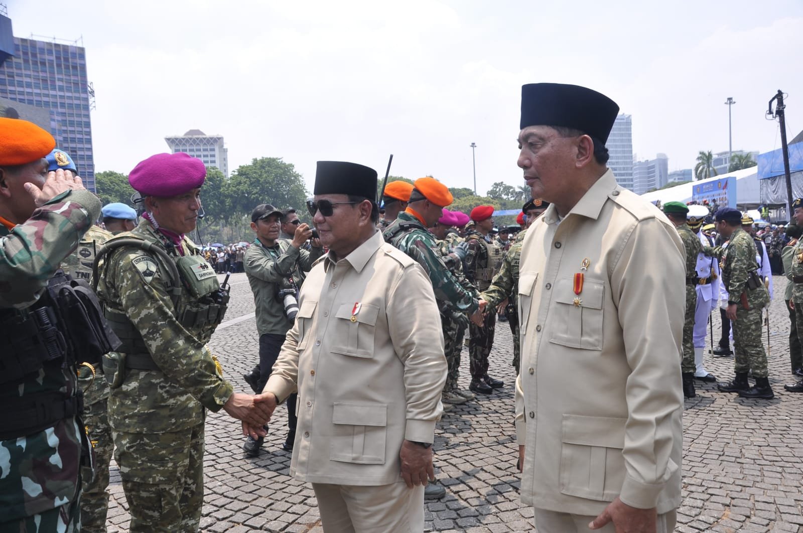 JAKARTA,Benua News.com – Mayjen TNI (Mar) Ili Dasili, S.E., yang sehari-hari menjabat sebagai Komandan Pasmar 1 (Danpasmar 1) memimpin ribuan prajurit Jalasena TNI AL untuk memberikan penghormatan kepada Presiden Republik Indonesia Bapak Prabowo Subianto pada Upacara peringatan Hari Ulang Tahun (HUT) ke-80 TNI yang digelar di Lapangan Silang Monas, Jakarta Pusat, Minggu (05/10/2025).