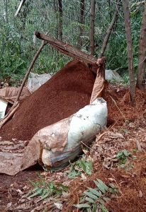 “sesuai pantauan awak media pengambilan gambut tersebut sdh cukup lama karena lubang di sepanjang jalan sangat terlihat dalam dan karung berisi gambut di sepanjang jalan serta Mobil Ranger standby menunggu muatan untuk di bawa ke Nurusery untuk di olah.