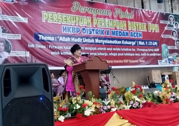 MEDAN-Benuanews.com-Perayaan Natal Persekutuan Perempuan Distrik (PPD) HKBP Distrik X Medan Aceh, berlangsung meriah dan penuh sukacita, pada Selasa, 2 Desember 2025 di Gedung Aula Fakultas Kedokteran Universitas HKBP NOMENSEN MEDAN dimulai sejak pukul 16.00 Wib sampai dengan selesai.