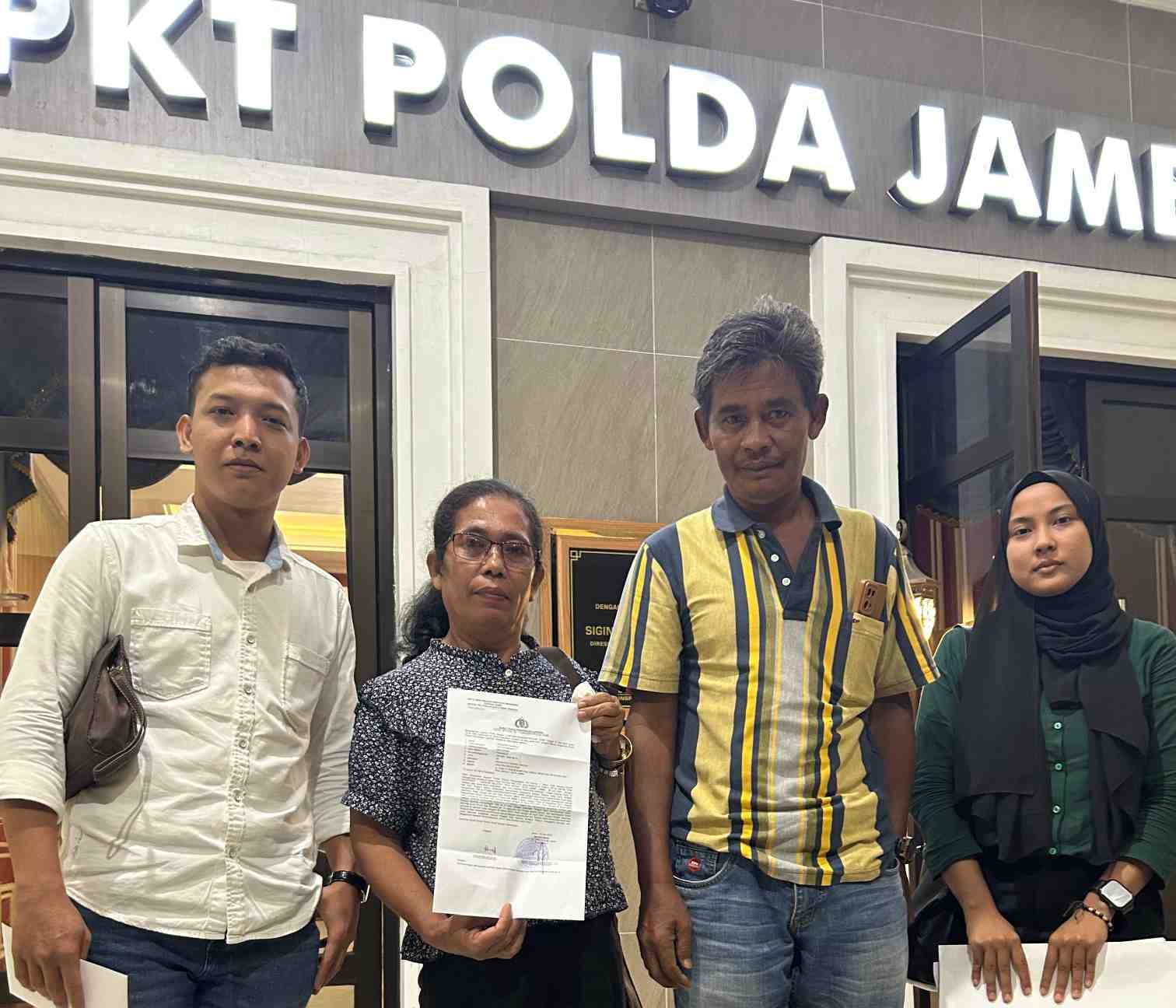 Agustina sagala didampingi keluarga dan kuasa hukum mendatangi Mapolda Jambi,untuk melaporkan Direktur PT.MMJ berinisial APS, selain APS korbannya Juga melaporkan AS.