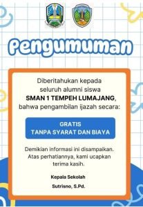 “Dana kegiatan Sekarsari ini sepenuhnya berasal dari alokasi sekolah. Kami pastikan tidak ada pungutan biaya apapun kepada siswa-siswi. Bahkan, pengambilan ijazah bagi seluruh alumni SMAN 1 Tempeh juga GRATIS tanpa dipungut biaya apapun,” tegasnya.
