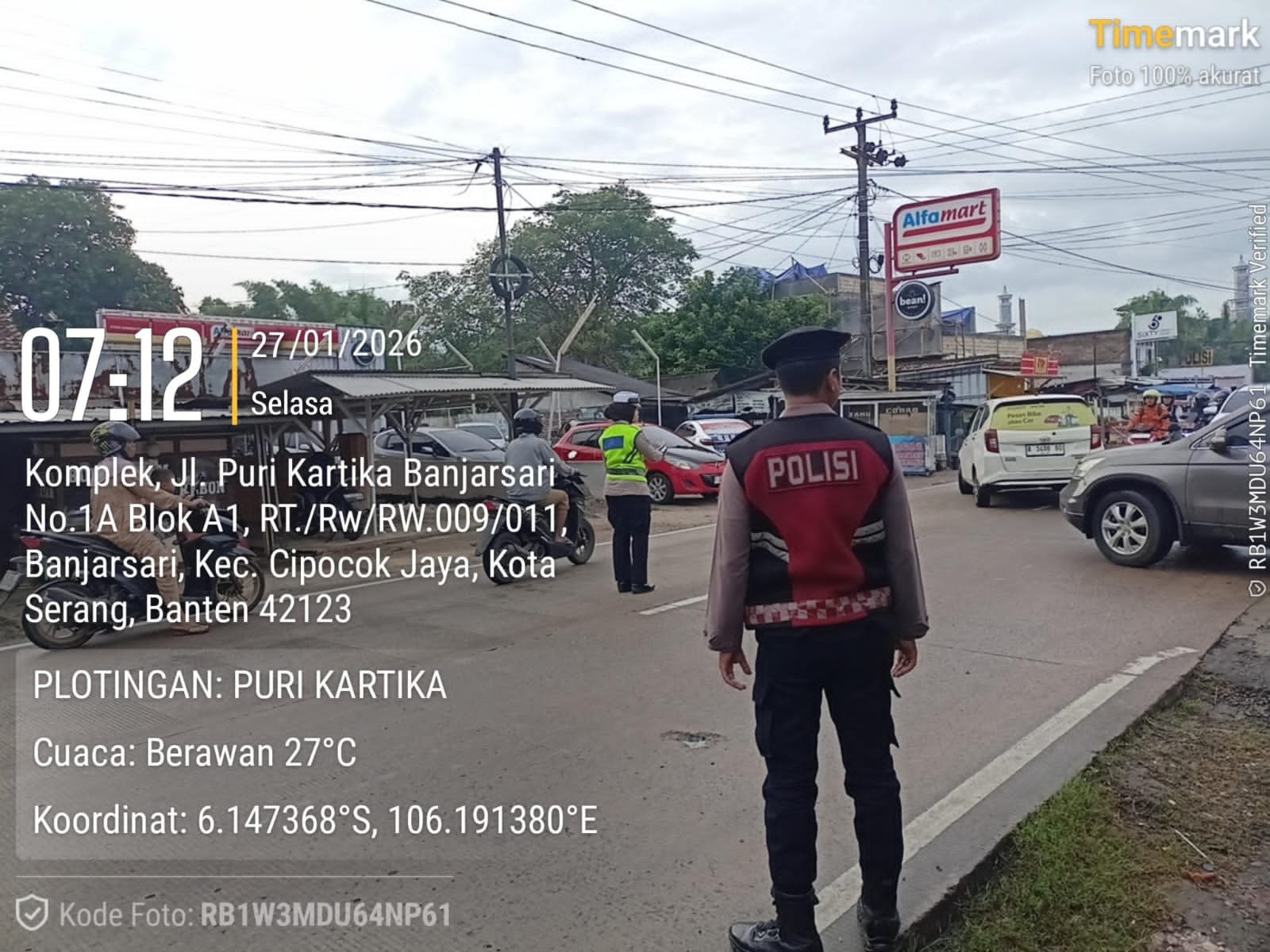 Banten Benuanews.com Personel Direktorat Samapta (Ditsamapta) Polda Banten melaksanakan kegiatan pengaturan lalu lintas (Gatur) pagi di sejumlah titik rawan kepadatan arus kendaraan, Selasa (27/01). Kegiatan ini merupakan bentuk pelayanan prima Polri kepada masyarakat guna menjaga kelancaran dan keselamatan pengguna jalan.