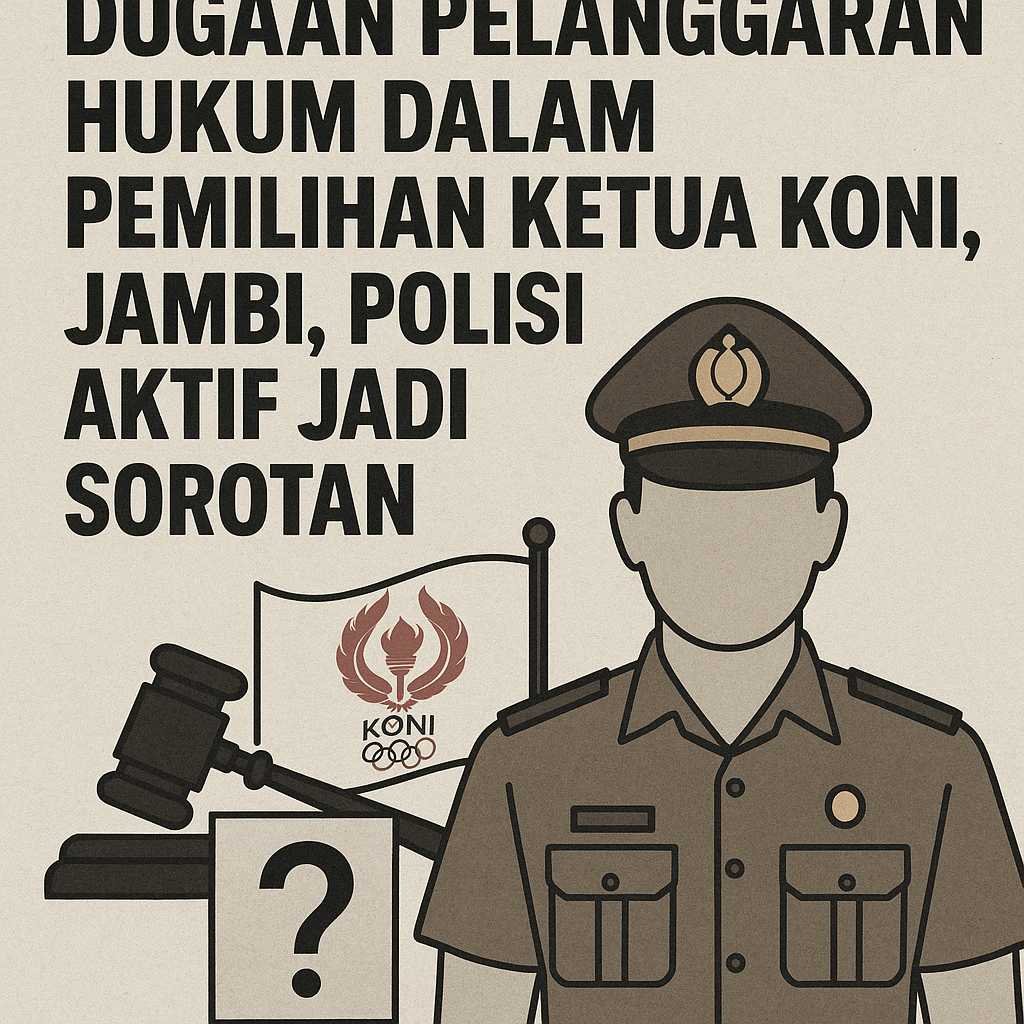 Jambi.(Benuanews.com)-Proses pemilihan Ketua Umum Komite Olahraga Nasional Indonesia (KONI) Provinsi Jambi periode 2025–2029 kini menjadi sorotan tajam publik. Terpilihnya AKBP Mat Sanusi, seorang perwira aktif yang masih berdinas di Polda Jambi, sebagai Ketua KONI menuai kontroversi luas, tidak hanya di kalangan insan olahraga, tetapi juga di ruang hukum dan publik sipil.