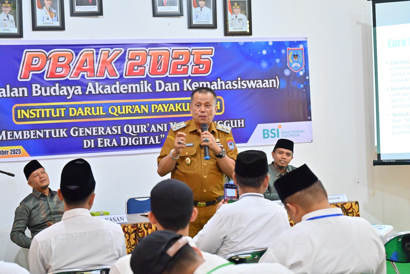 Pesan itu ia sampaikan saat membuka kegiatan Pengenalan Budaya Akademik dan Kemahasiswaan (PBAK) Institut Darul Qur’an Payakumbuh Tahun Akademik 2025/2026, Selasa (9/9/2025).