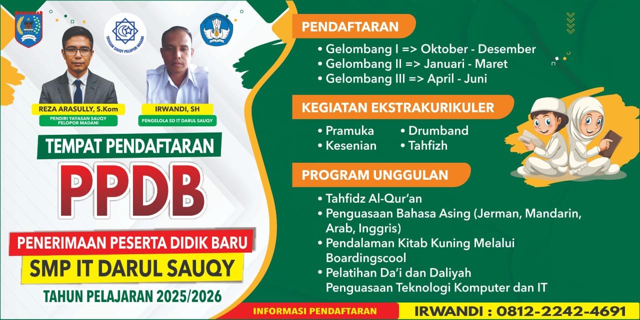 Payakumbuh – Benuanews.com, Payakumbuh Sumatera Barat berdiri sekolah SMP IT Tarbiyah Darul Syauqy dengan program unggulan mengajarkan empat bahasa asing ( inggris, Jerman, Mandarin dan Arab) pendalaman Kitab Kuning atau kitab keagamaan Islam klasik berbahasa Arab.