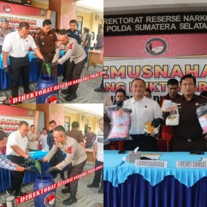 Direktur Reserse Narkoba Polda Sumsel Kombes Pol Yulian Perdana didampingi Kabid Humas Polda Sumsel Kombes Pol Nandang Mu’min Wijaya SIK MH diwakili P.S Kaur Penum Kompol I Putu Suryawan ,SH,SIK menegaskan pihaknya akan terus berkomitmen memberantas peredaran narkoba di Bumi Sriwijaya tanpa pandang bulu.