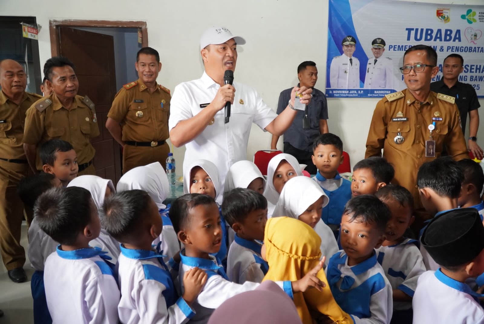 Bupati Tulang Bawang Barat, Ir. Novriwan Jaya, S.P., memimpin langsung pelaksanaan di Kecamatan Tulang Bawang Udik, dengan titik kegiatan di Tiyuh Gading Kencana. Turut mendampingi Kepala Dinas Kesehatan, Kepala Dinas PUPR, Plt. Kepala Dinas Lingkungan Hidup, serta Camat Tulang Bawang Udik.