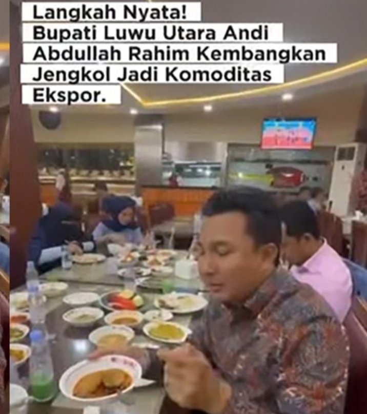 Menariknya, Andi Rahim tak sekadar makan di tempat itu. Ia juga ikut mempromosikan komoditas jengkol yang ada dalam sepiring semur jengkol yang dinikmatinya. Nah, siapa sangka, jengkol yang dinikmati Bupati Andi Abdullah Rahim tersebut ternyata berasal dari bumi Luwu Utara.