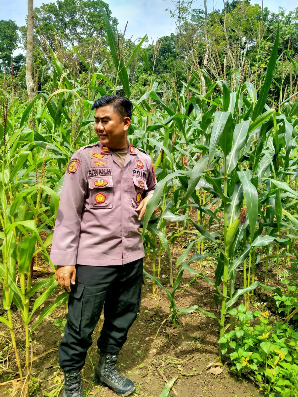 Kapolsek Cimarga Polres Lebak bersama Bhabinkamtibmas dan masyarakat petani jagung melaksanakan cek lahan yang di tanami jagung. Dalam prosesnya, tanaman jagung hibrida harus dirawat dengan teknik pemupukan, penyiraman, serta pengendalian hama untuk memastikan hasil panen yang optimal.
