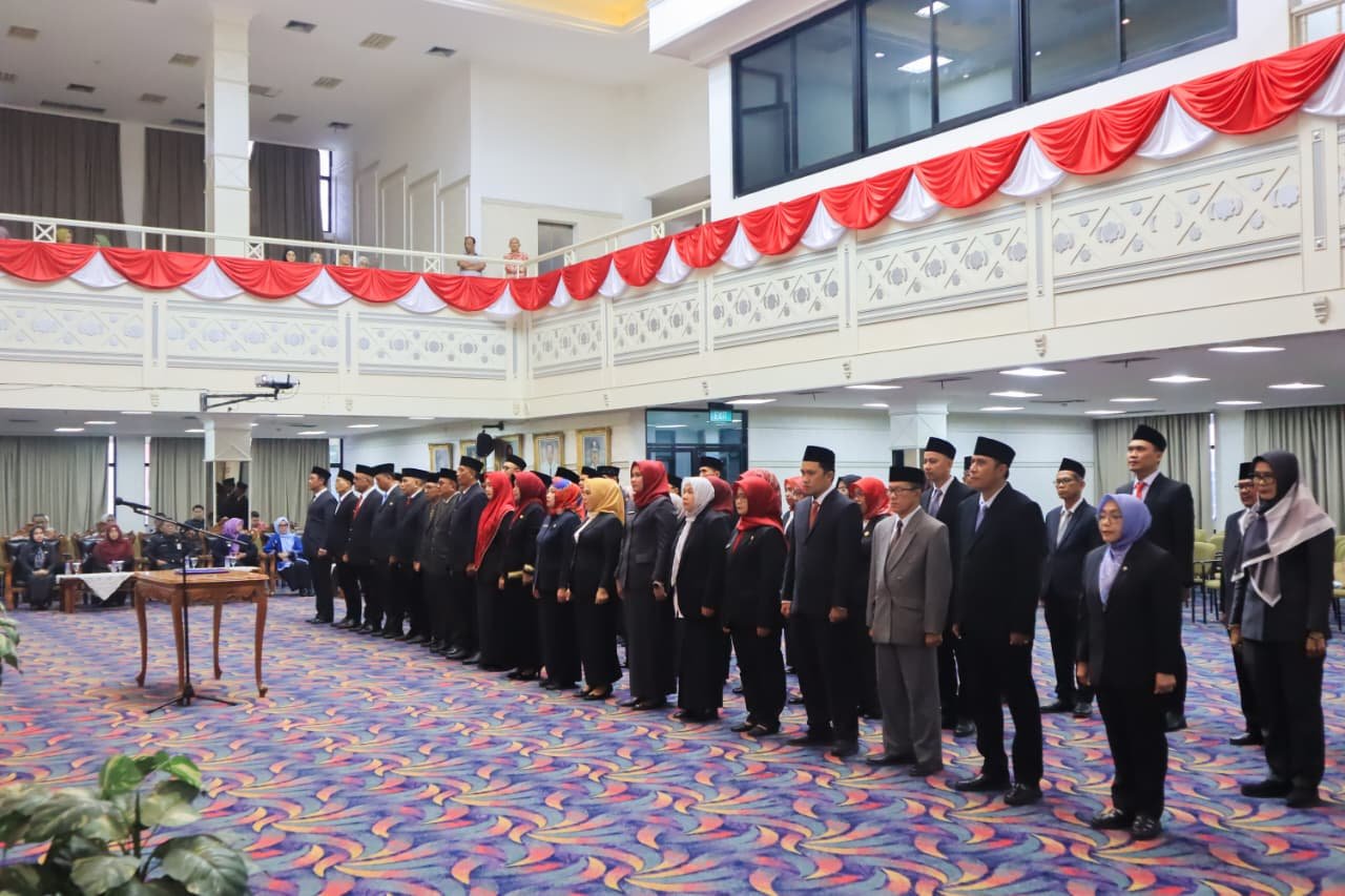 Bandar Lampung, .com – Gubernur Lampung diwakili oleh Inspektur Provinsi Lampung, Bayana melantik dan mengambil sumpah/janji jabatan pejabat administrator, pejabat pengawas, dan pejabat fungsional di lingkungan pemerintah Provinsi Lampung bertempat di Balai Keratun Lt III, Komplek Kantor Gubernur, Bandar Lampung, Jumat (10/10/2025).