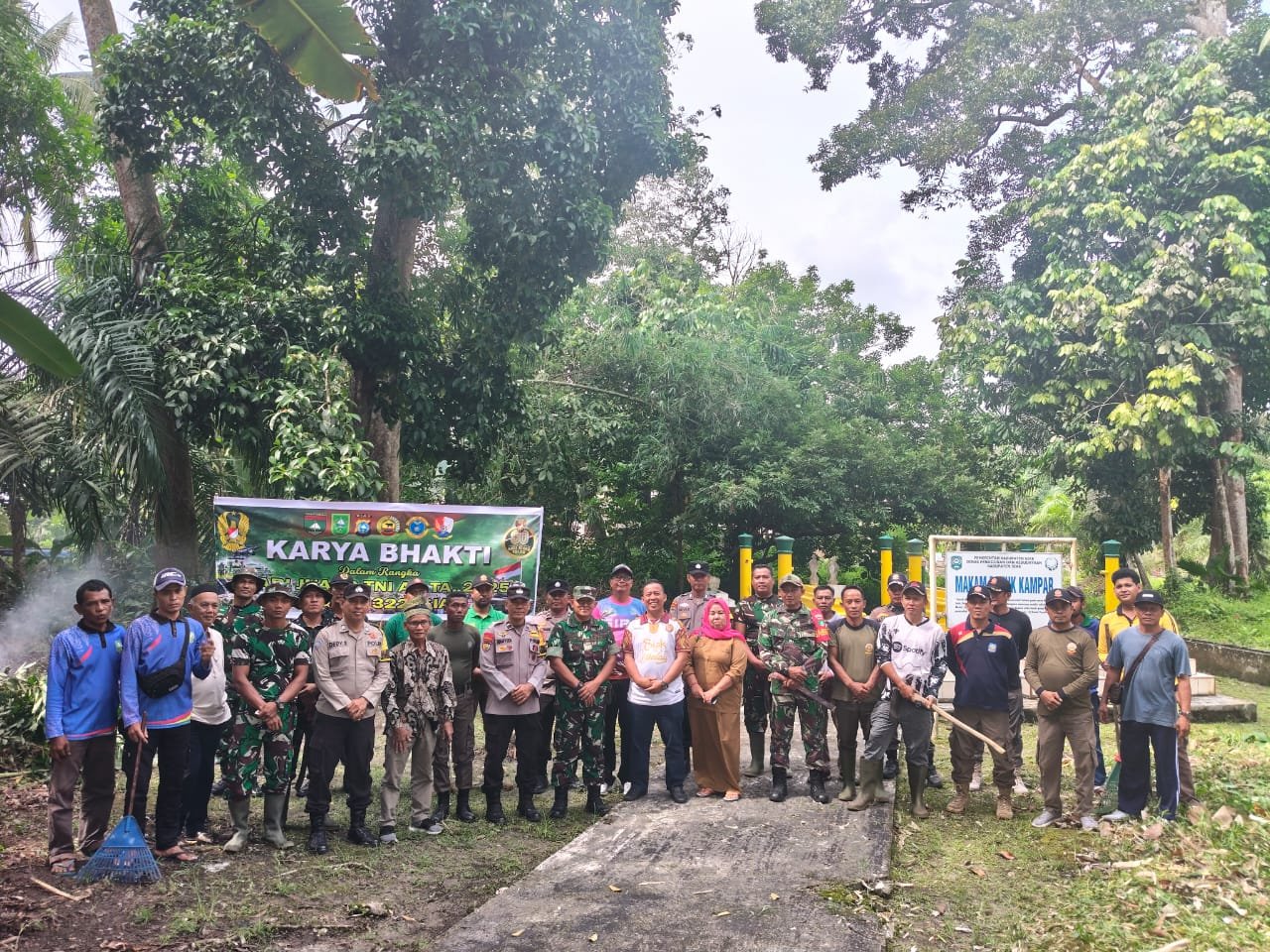 Kegiatan diawali dengan sambutan Pasiter Kodim 0322/Siak, dilanjutkan dengan pelaksanaan karya bakti pembersihan area pemakaman, serta diakhiri dengan foto bersama sebagai simbol soliditas dan kebersamaan lintas sektor antara TNI, Polri, pemerintah daerah, dan masyarakat.