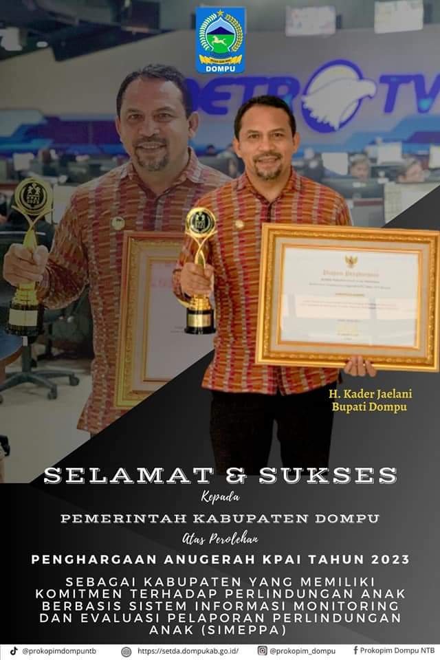 “Di tahun 2023 ini Bupati AKJ dianugerahi penghargaan karena dinilai memiliki komitmen yang kuat dalam upaya perlindungan dan pemenuhan hak anak,”kata Sekda Dompu.