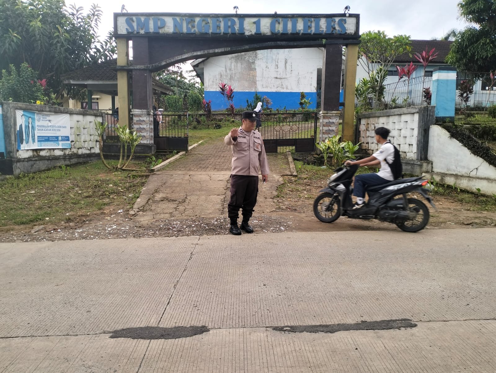 Lebak Benuanews.com Dalam rangka memberikan rasa aman dan nyaman kepada para pelajar, Kanit Binmas Polsek Cileles Polres lebak Aipda Sofyan melaksanakan kegiatan pengaturan lalu lintas di depan Sekolah pada jam masuk sekolah, hari Selasa (14-04-2026)