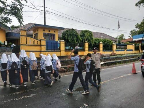 Kanit Binmas Polsek Rangkasbitung Polres Lebak Sebrangkan Anak Pelajar SMPN 3 Rangkasbitung