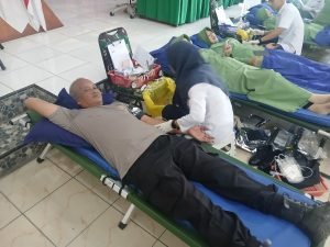 Kanit Binmas Polsek Rangkssbitung Polres Lebak Giat Donor Darah di Kodim 0603/Lebak Menyambut Hari Persit