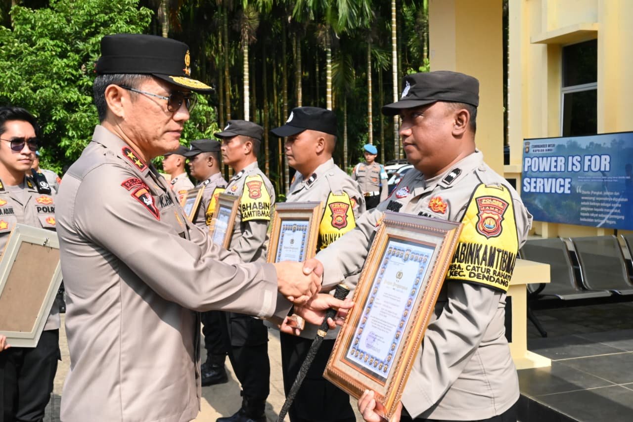 Dalam sambutannya, Kapolda Jambi menegaskan bahwa pemberian penghargaan ini merupakan bentuk apresiasi pimpinan kepada anggota yang berdedikasi tinggi di lapangan.