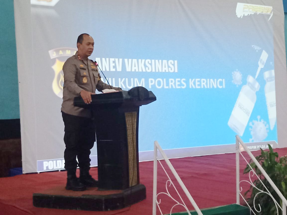 Diuraikan Kapolda, peta cakupan vaksinasi covid-19 dosis pertama Kabupaten Kerinci yang divaksin saat sebanyak 112.188 jiwa dari target 195.783 jiwa dengan pencapaian 57,3 persen.