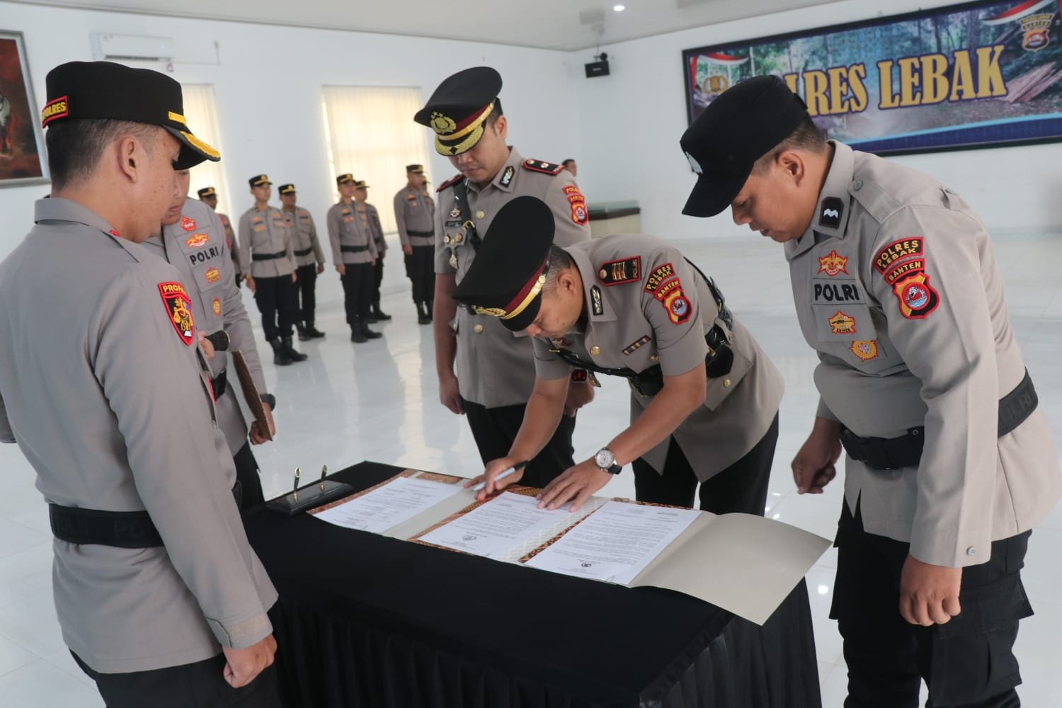 Kapolres Lebak AKBP Herfio Zaki, S.I.K., M.H. menyampaikan bahwa mutasi jabatan di lingkungan Polri merupakan hal yang wajar dan bagian dari dinamika organisasi sebagai bentuk penyegaran serta pengembangan karier personel.