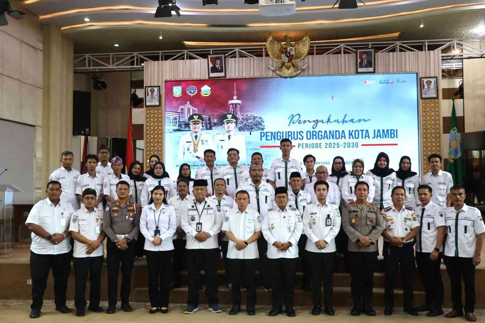 Pengukuhan tersebut dipimpin langsung oleh Wali Kota Jambi, Dr. dr. H. Maulana, M.K.M., yang juga melakukan penandatanganan Naskah Pengukuhan sebagai Pembina Umum. Turut mendampingi, Wakil Wali Kota Jambi Diza Hazra Aljosha, S.E., M.A., serta Sekretaris Daerah Drs. H. A. Ridwan, M.Si.