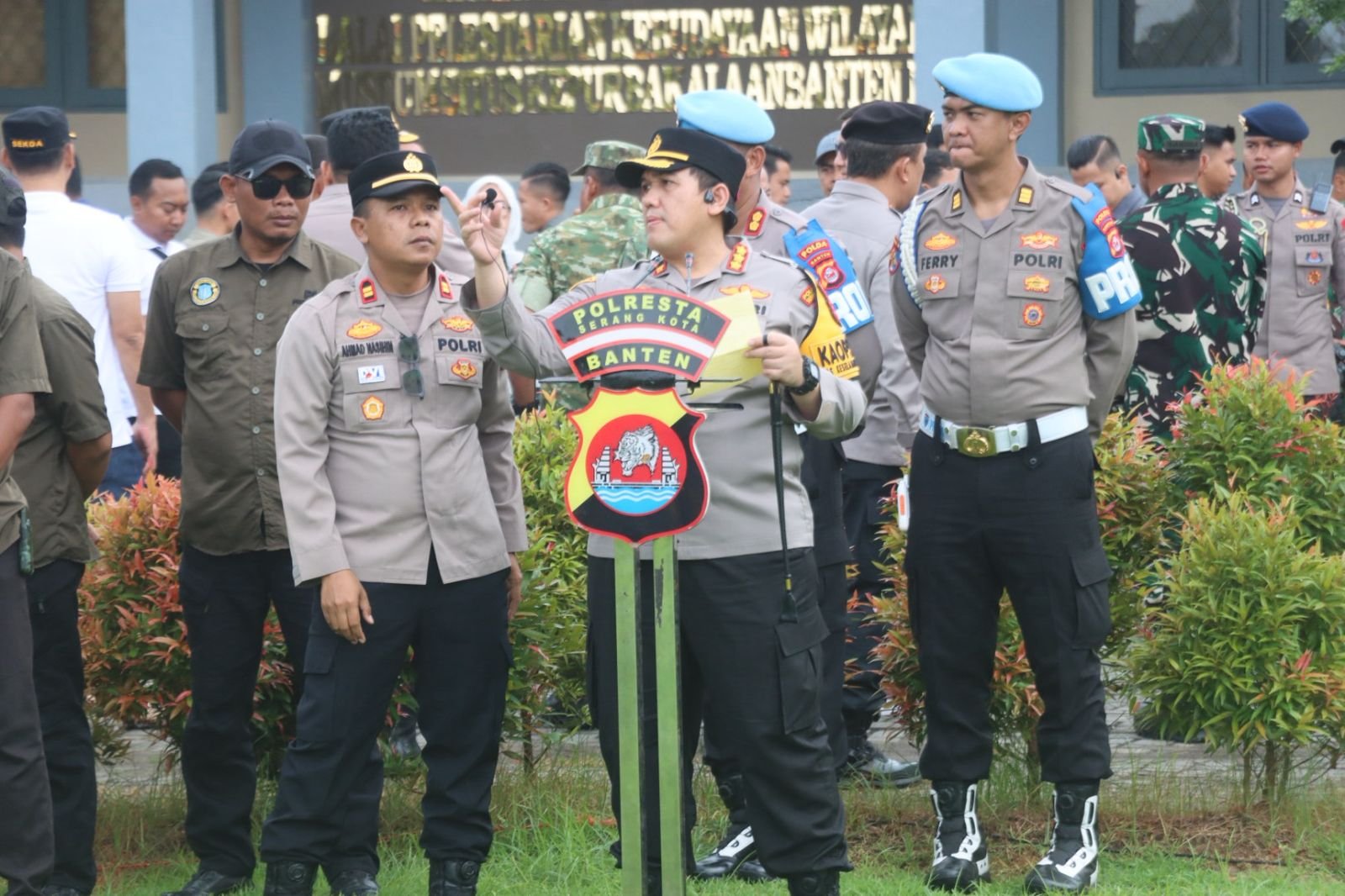 Hadir dalam kegiatan tersebut Kapolda Banten Irjen Pol. Hengki, S.I.K., M.H., Forkopimda Provinsi Banten, Sekretaris Daerah Provinsi Banten, Danrem 0604, Kajati Banten, Wakapolda Banten, para Pejabat Utama Polda Banten, Pejabat Utama Polresta Serang Kota, serta personel gabungan TNI–Polri, unsur pemerintah Provinsi, Kota, dan Kabupaten. Turut serta pula adik-adik siswa-siswi dari SMP dan SMA.