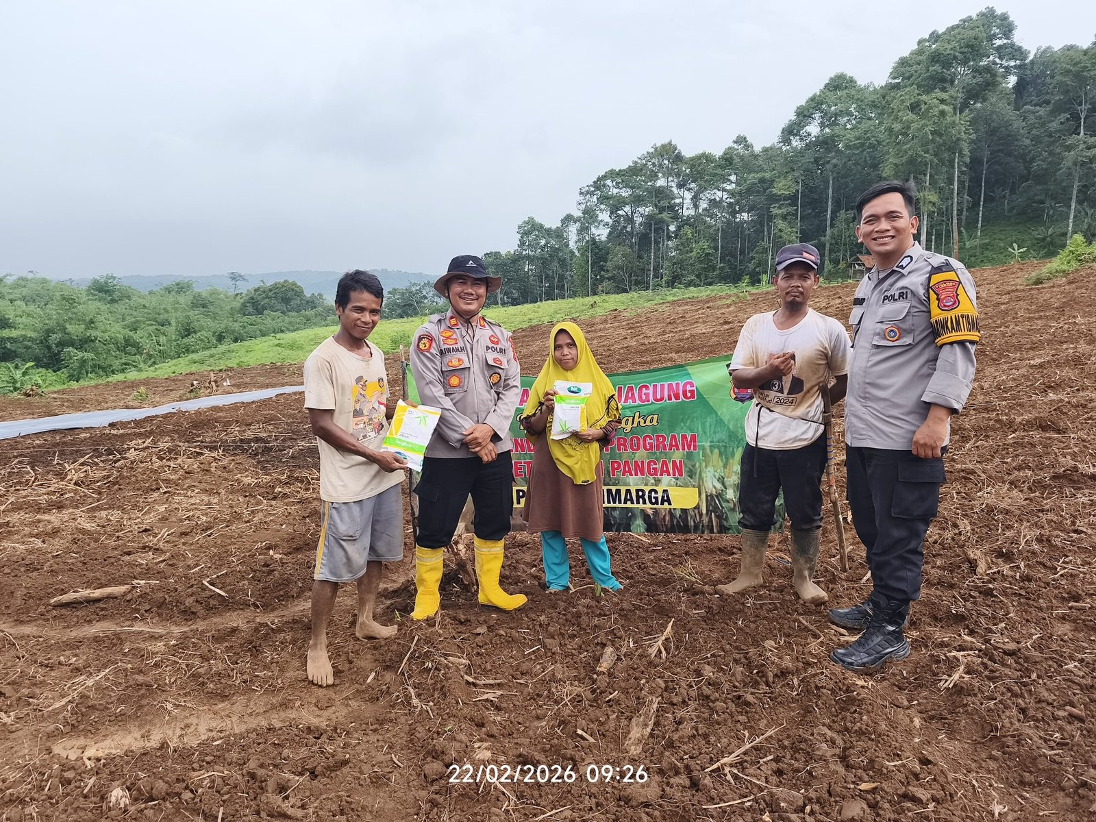 Lebak Benuanews.com Kapolsek Cimarga Polres Lebak AKP. Pipih Iwan Hermansyah bersama Pertani, dan Bhabinkamtibmas Polsek Cimarga Brigadir Dikka melaksanakan kegiatan Penanaman Jagung berlokasi di Kampung Gohong Desa Sangiangjaya Kecamatan Cimarga Kabupaten Lebak. Minggu, 22/02/2026).