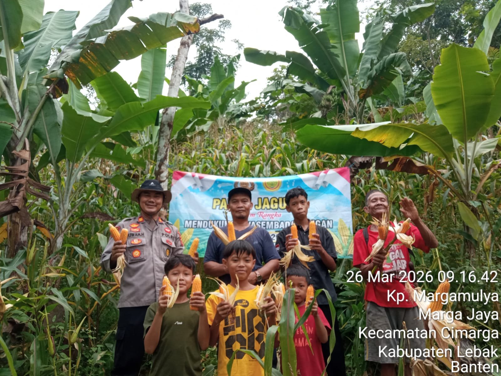 Lebak Benuanews.com Untuk menjalankan Perintah Pimpinan dalam rangka mendukung program prioritas Kapolri Presisi (Prediktif, Responsibilitas, Transparansi, dan Berkeadilan) dan Asta Cita Presiden RI. Kapolsek Cimarga Polres Lebak Akp Pipih Iwan Hermansyah, melaksanakan kegiatan Panen Jagung Hibrida bersama masyarakat di Kp. Margamulya Desa Margajaya Kecamatan Cimarga Kabupaten Lebak. Kamis, (26/03/2026).