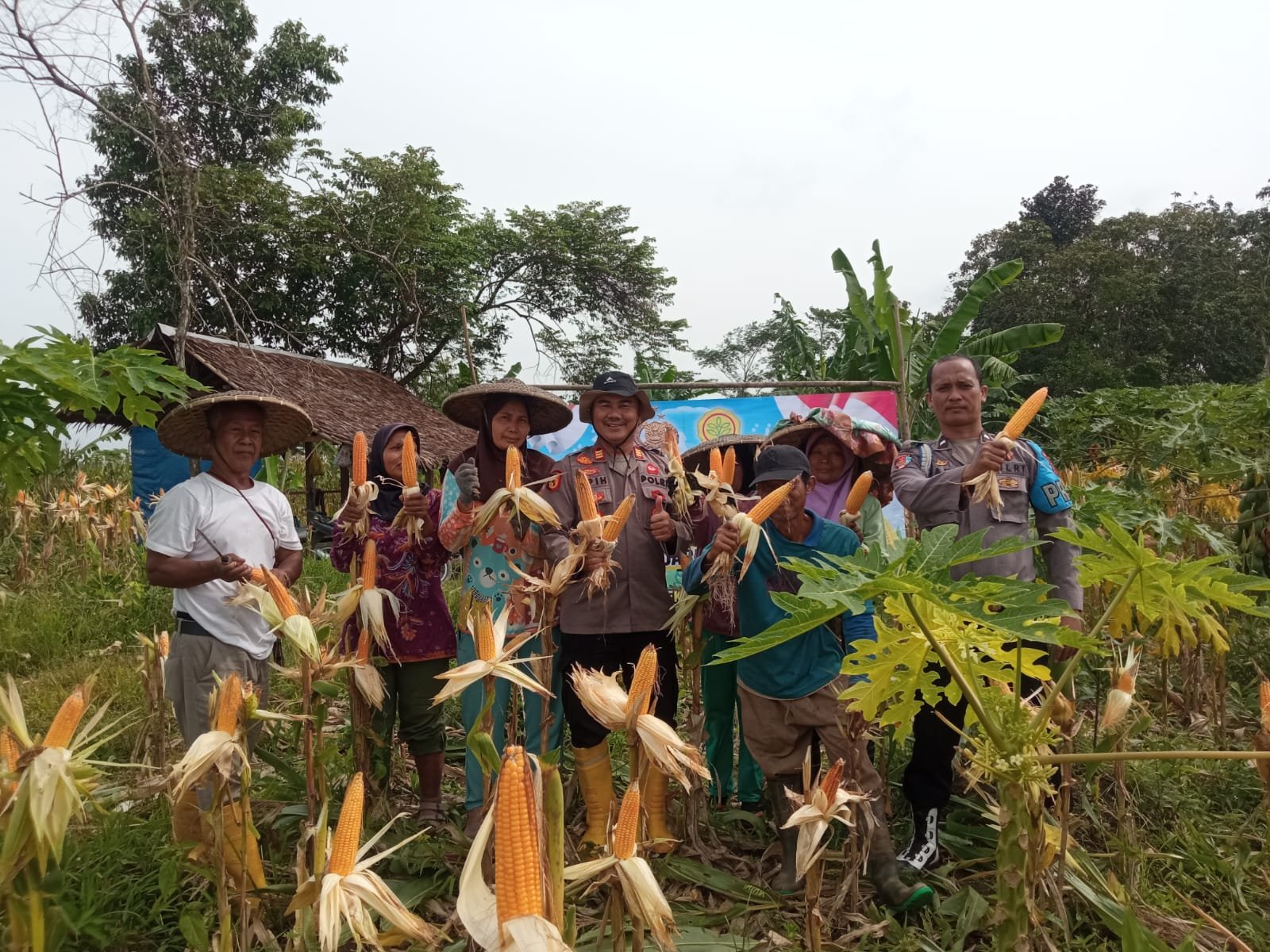 Kapolsek Cimarga Polres Lebak Polda Banten Bersama Petani Desa Mekarjaya Melaksanakan Panen Jagung Hibrida