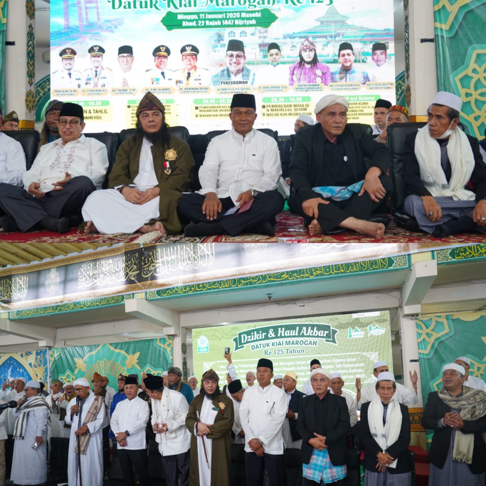 Hadir juga Gubernur Sumsel H.Herman Deru, Walikota Palembang Ratu Dewa, Mantan Menteri Agama RI Prof. Dr. Said Agil Husain Almunawar, Unsur Forkopimda Propinsi/Kota dan OPD serta para Sesepuh Zuriyat Kiai Marogan.