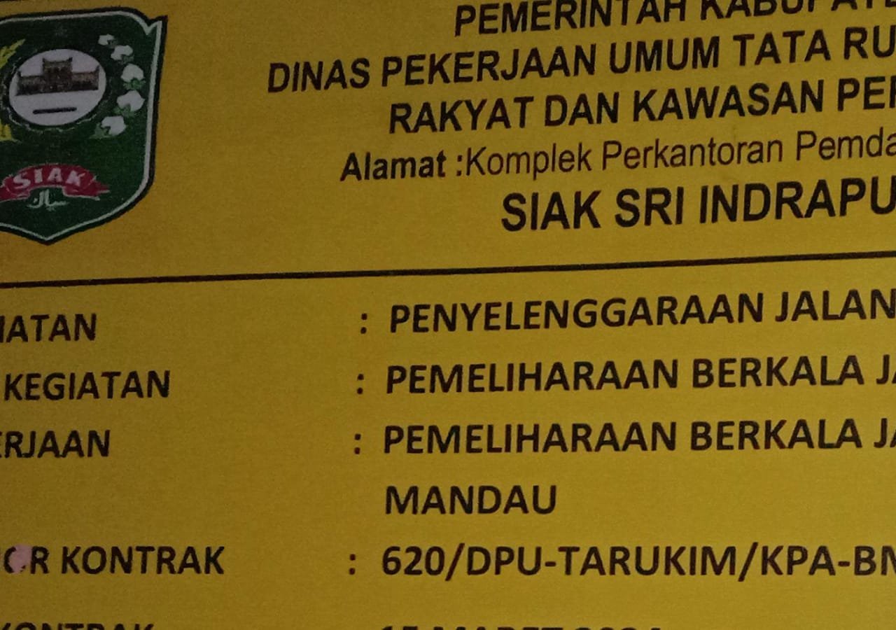 Program pemeliharaan jalan poros Kecamatan Sungai Mandau, Kabupaten Siak, Provinsi Riau, yang bersumber dari Anggaran Pendapatan dan Belanja Daerah (APBD) Tahun 2024, diduga kuat tidak terlaksana sesuai dengan perencanaan dan realisasi di lapangan.