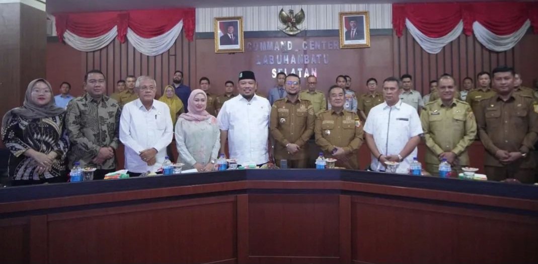 Bupati Labuhanbatu Selatan (Labusel), Fery Sahputra Simatupang, menyambut hangat kedatangan Anggota DPRD Provinsi Sumatera Utara dari Daerah Pemilihan (Dapil) VI dalam kunjungan kerja (kunker) yang digelar di Aula Command Center Kantor Bupati,Desa Sosopan, Kecamatan Kotapinang, Kabupaten Labuhanbatu Selatan, Sumatera Utara, Selasa (8/7/2025).