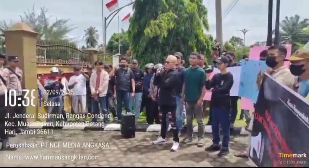 Dengan atribut lengkap, massa mendesak agar M segera dicopot dari jabatannya sebagai anggota DPRD Batang Hari.