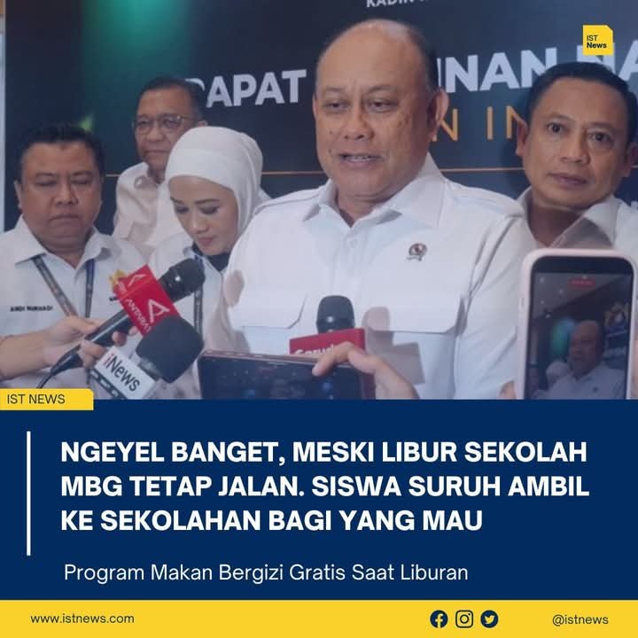 Sementara itu, Kepala Badan Gizi Nasional (BGN), Dadan Hindayana, menegaskan bahwa program MBG tetap dilaksanakan selama libur sekolah, dengan mekanisme penyesuaian. Pada awal libur, siswa dapat menerima makanan siap santap hingga empat hari, dilanjutkan pengambilan di sekolah atau pengantaran ke rumah sesuai pendataan SPPG.