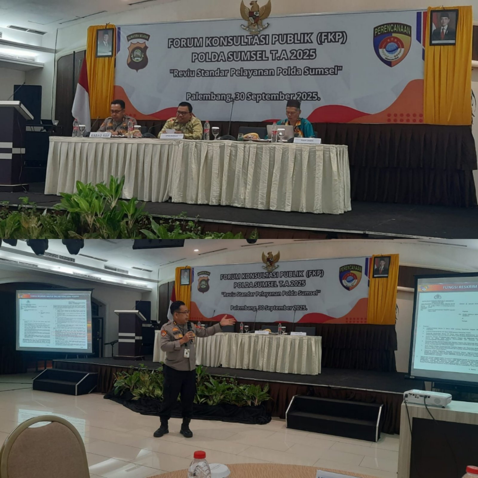 Salah satu langkah strategis yang dilakukan Biro Perencanaan (Rorena) Polda Sumsel dengan menggelar Forum Konsultasi Publik (FKP) Tahun 2025 dengan tema “Reviu Standar Pelayanan Polda Sumsel”