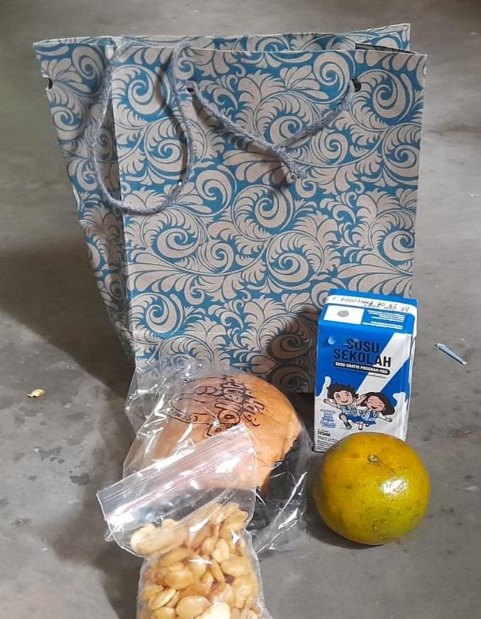 > “Kalau dihitung harga pasar, ini tidak sampai Rp10 ribu. Roti, susu sekolah, jeruk satu, sama kacang. Pertanyaannya sederhana, sisanya ke mana?” ujarnya.
