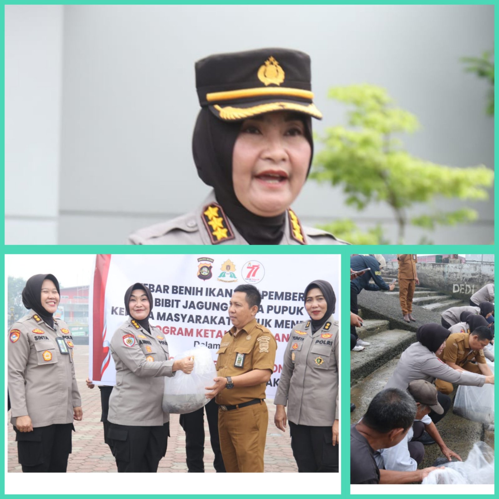 Rangkaian Hari Jadi Polwan Ke,- 77 Polwan Polda Sumsel dengan melaksanakan menebar ribuan benih ikan di pinggiran Sungai Musi, dan kolam ikan Pakri bersamaan dengan digelarnya kegiatan Penanaman jagung dilahan sematang borang Palembang ujar AKM Tk lll Itwasda Kombes Pol Andes Purwanti, SE, MM kepada insan Pers di kegiatan tebar benih ikan di pelataran BKB Palembang selasa 16/09/25 pagi